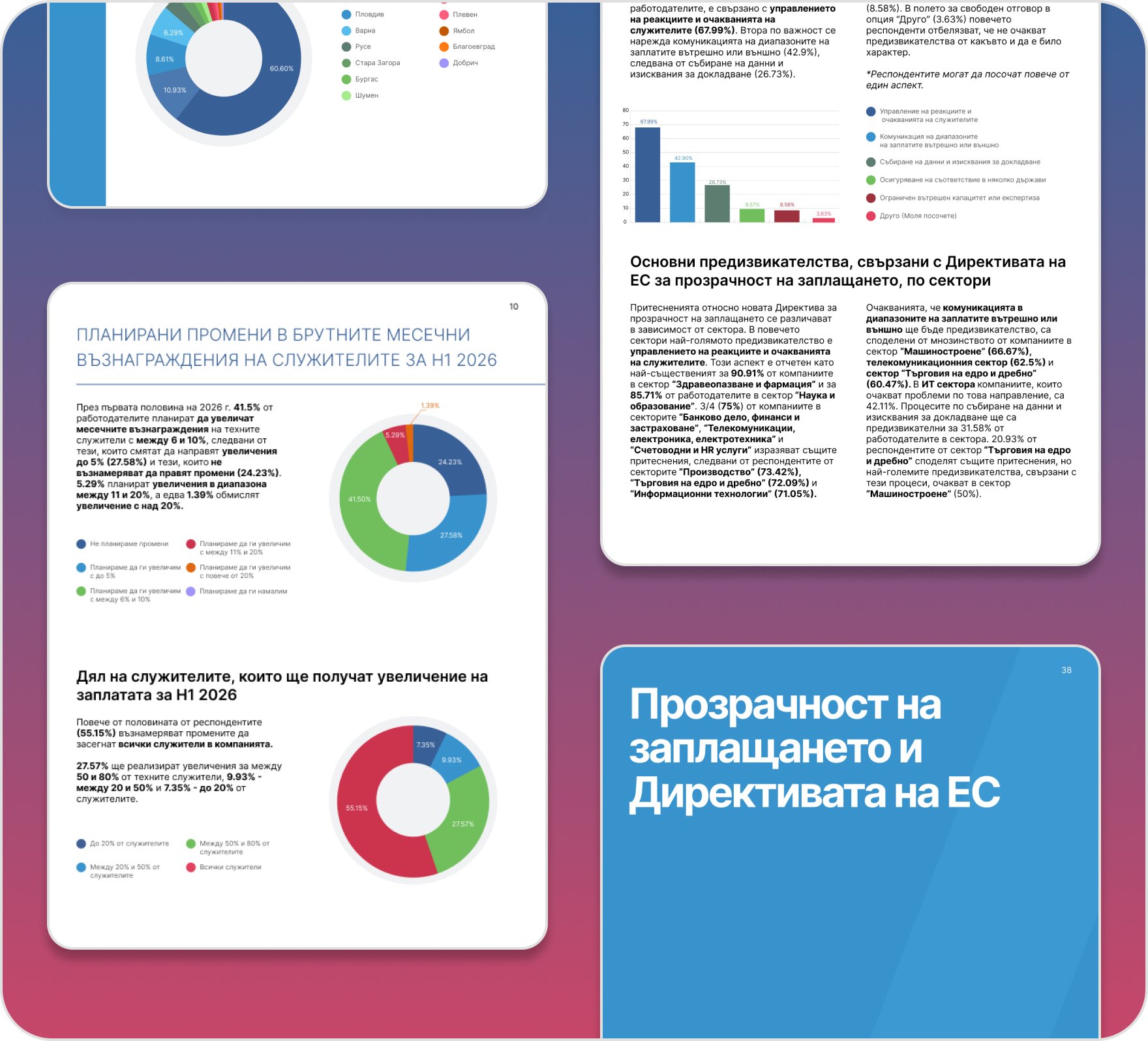 SATR H1 2026 ви помага да разберете как компаниите прилагат прозрачността на заплащането в ежедневната си практика и кои фактори влияят върху решенията на ръководството и HR екипите.